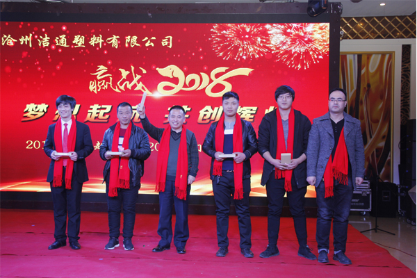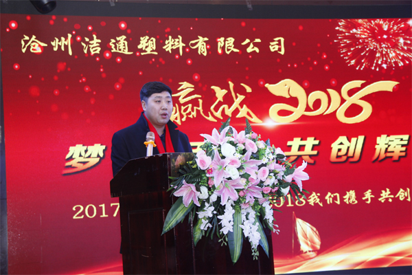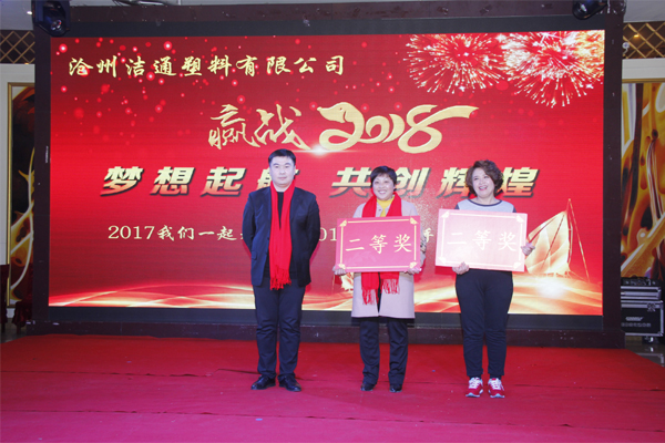 冬去春回又一載,似水流年旺年來。2018年2月12日下午,滄州潔通塑料有限公司2017年年會在正達大西洋酒店隆重舉行。潔通公司全體員工歡聚一堂,在熱情、溫馨、歡樂的氣氛中回首2017年取得的成績,共同迎接2018年的到來。
